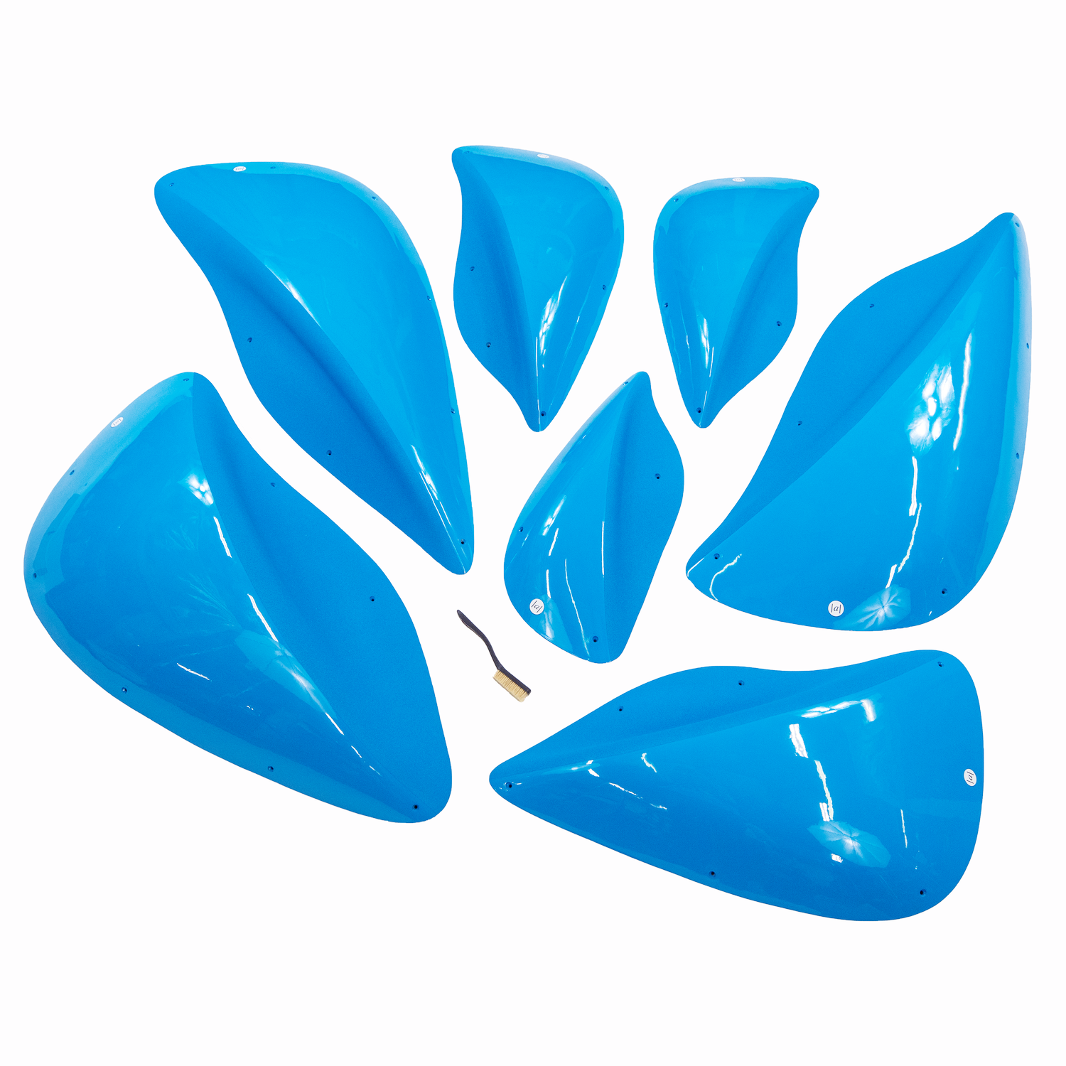 Built for competitions, this set of slopers and edges combines artistic, flowing shapes with directional grips for forced movement or standout feature boulder.